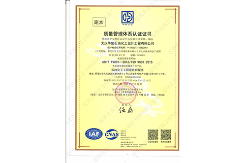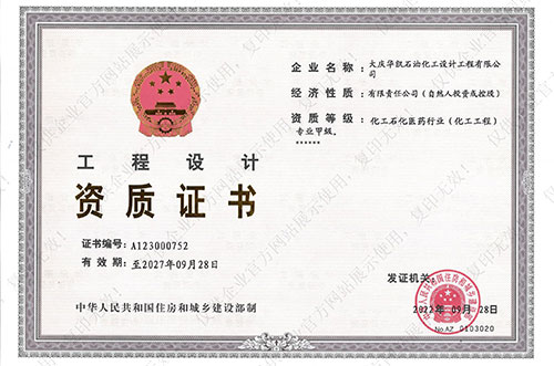 我公司具有化工工程專業(yè)甲級(jí),石油及化工產(chǎn)品儲(chǔ)運(yùn)、煉油工程、管道輸送、油田地面、制漿造紙工藝、城鎮(zhèn)燃?xì)夤こ獭⒔ㄖこ桃壹?jí)設(shè)計(jì)資質(zhì),石化、建筑乙級(jí)咨詢資質(zhì),并通過了ISO9001質(zhì)量管理體系的認(rèn)證、環(huán)境管理體系認(rèn)證和職業(yè)健康安全管理體系認(rèn)證,具有Ⅰ、Ⅱ、Ⅲ類壓力容器設(shè)計(jì)資格證及壓力管道設(shè)計(jì)資格證。